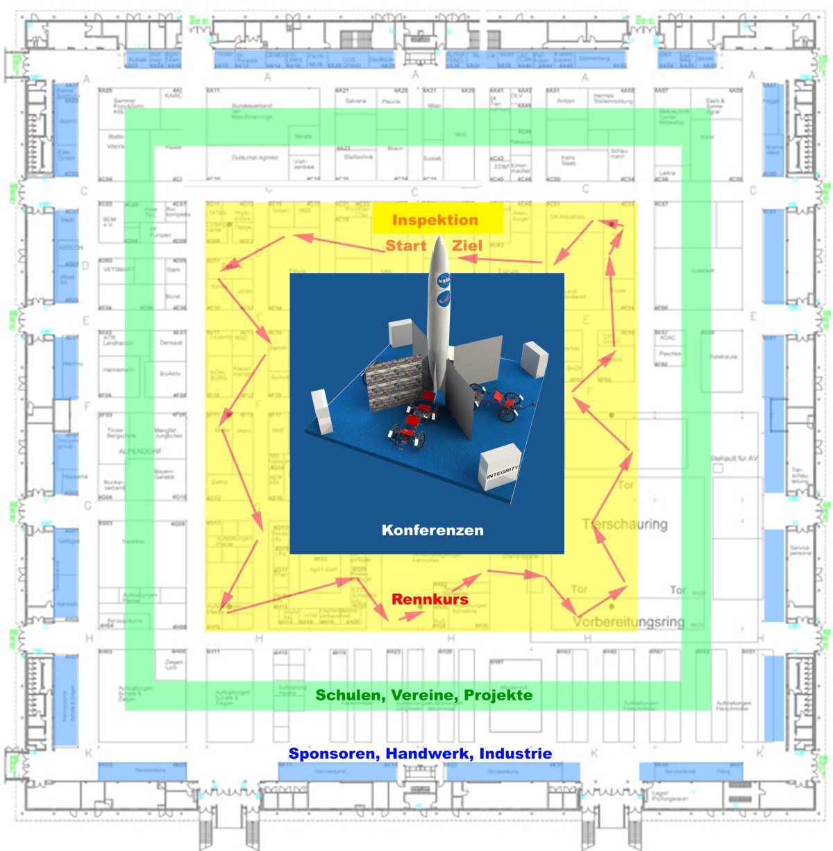 3. Um diese Rennstrecke befindet sich die Ausstellung auf welcher alle angemeldeten Teilnehmer ihre Projekte vorstellen (Einzelteilnehmer, Schulen, Vereine, Projekte)